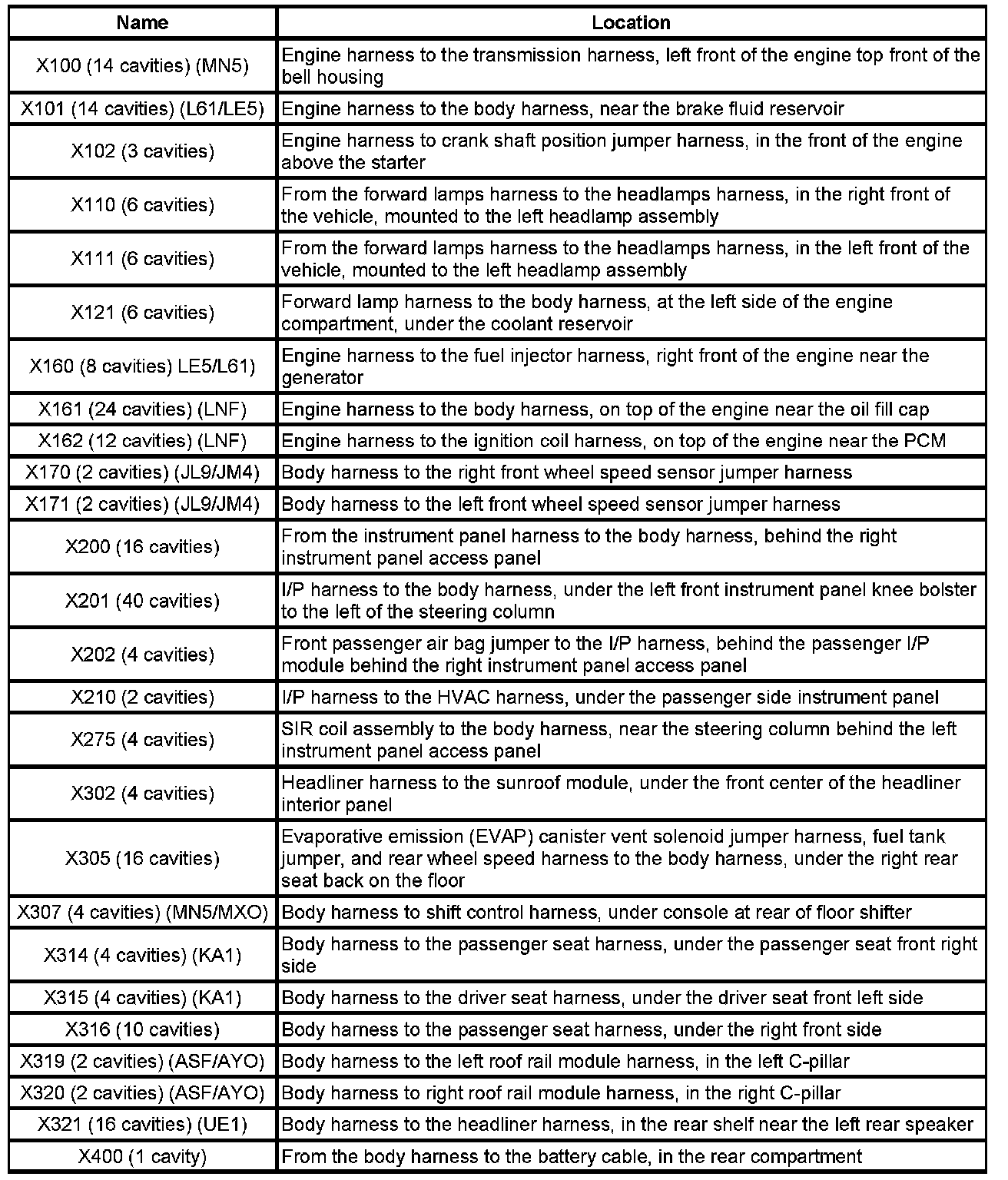 Master Connector List