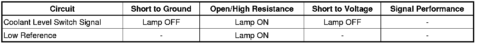 5. If all circuits test normal, test or replace the coolant level switch.