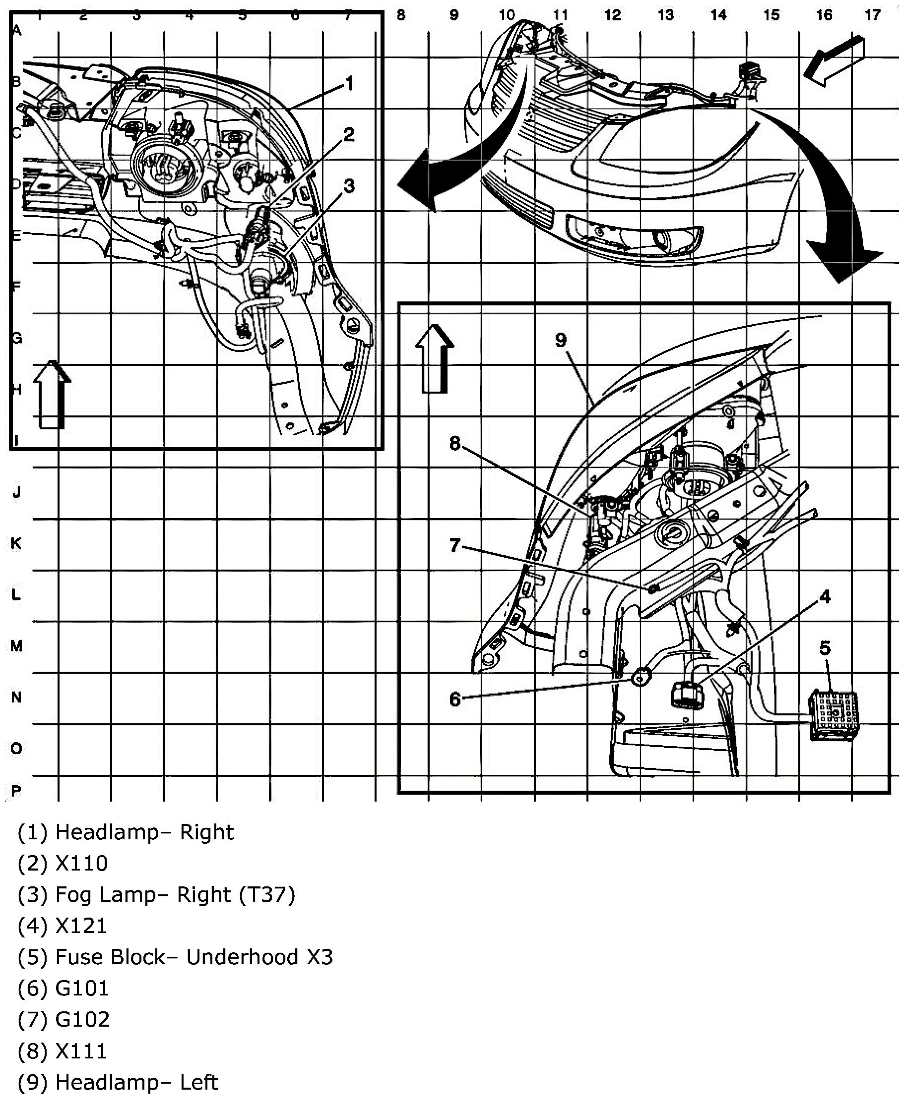From the forward lamps harness to the headlamps harness, in the left front of the vehicle, mounted to the left headlamp assembly.