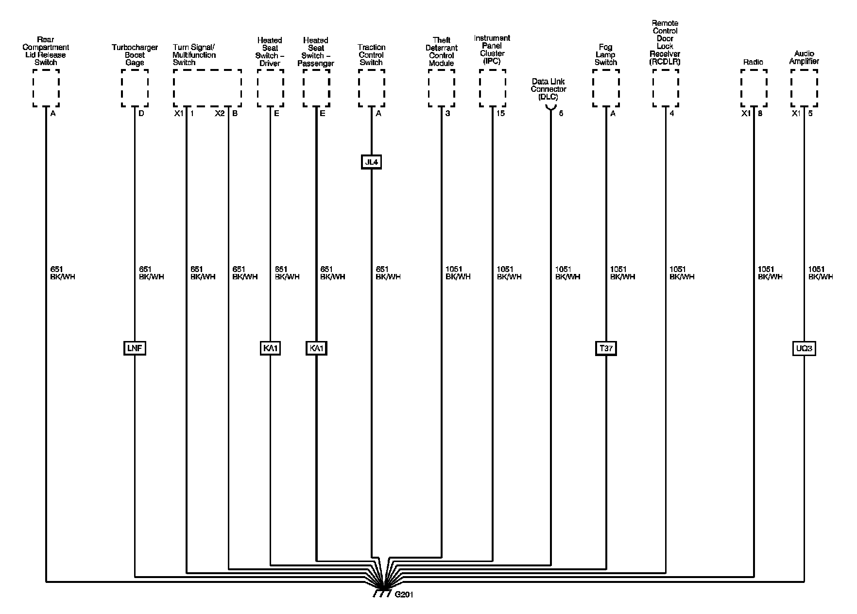 The locations for the Connectors, Grounds, Splices, and Grommets shown within these diagrams can be found via their numbers at Vehicle Locations.