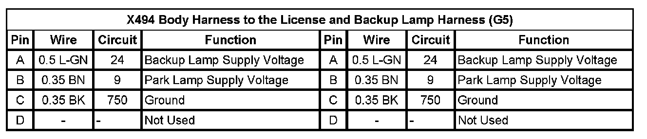 X494 Body Harness to the License and Backup Lamp Harness (G5)