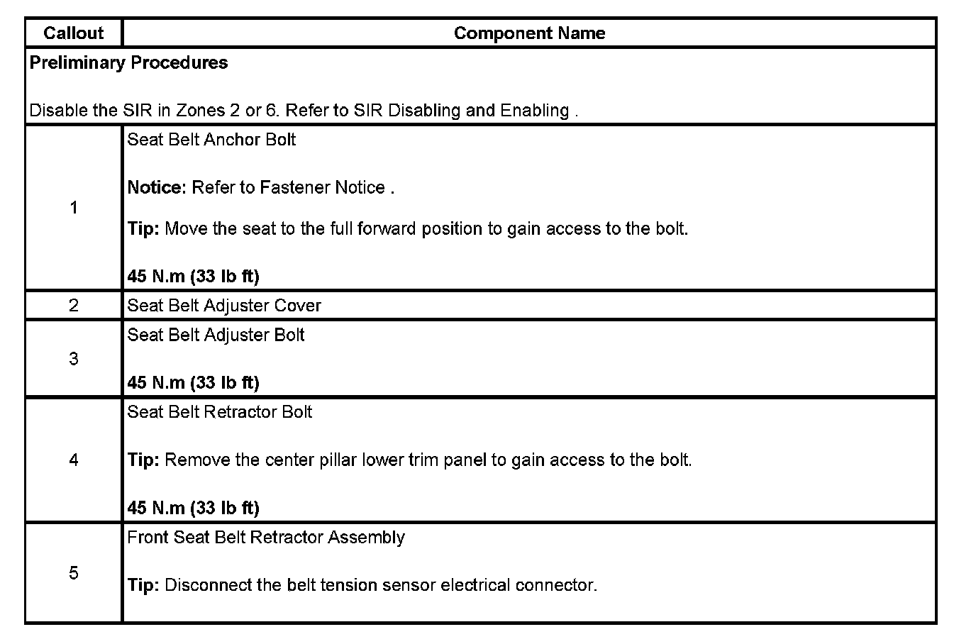 Pretensioner Replacement - Front (Sedan)