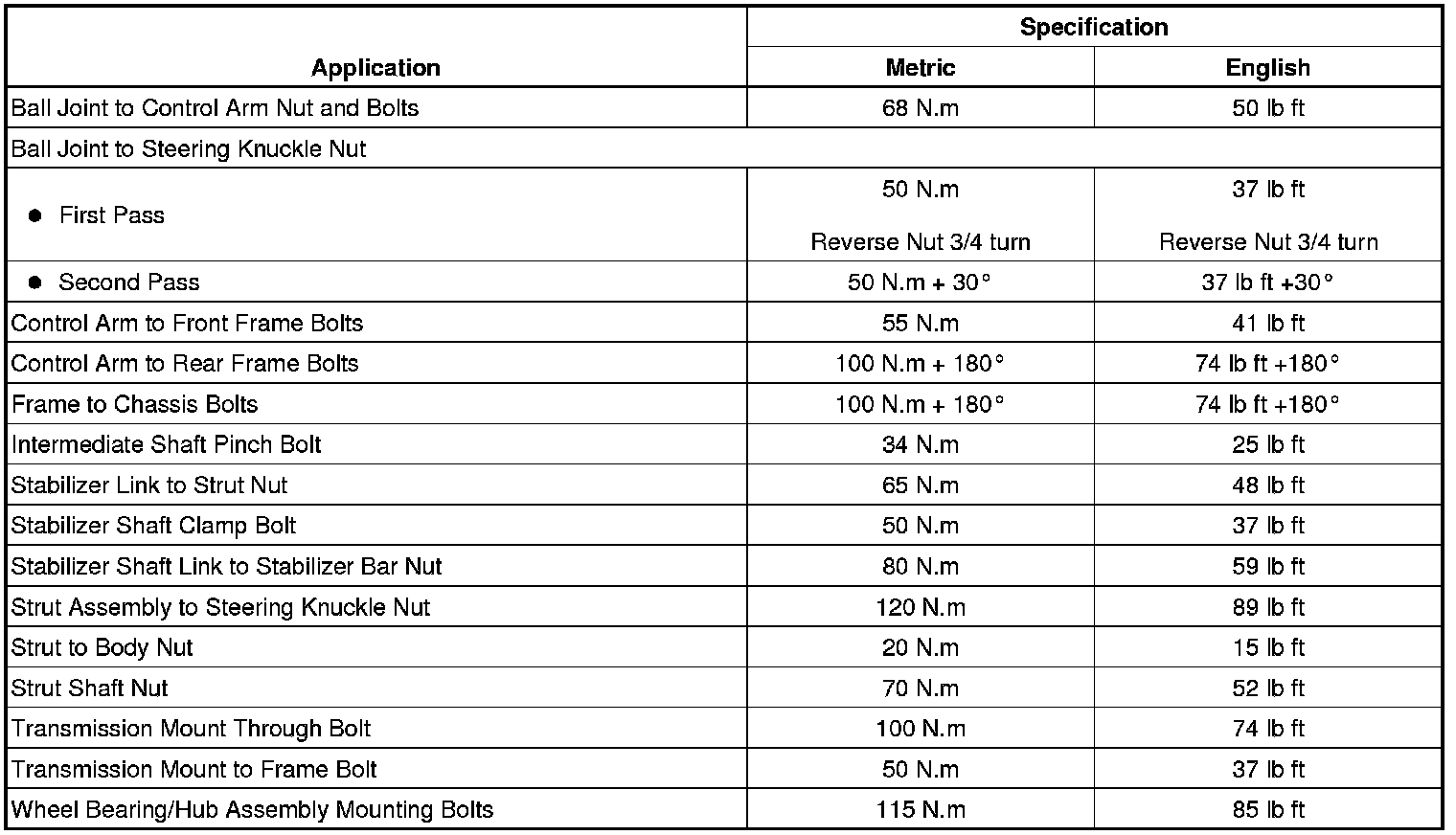Fastener Tightening Specifications