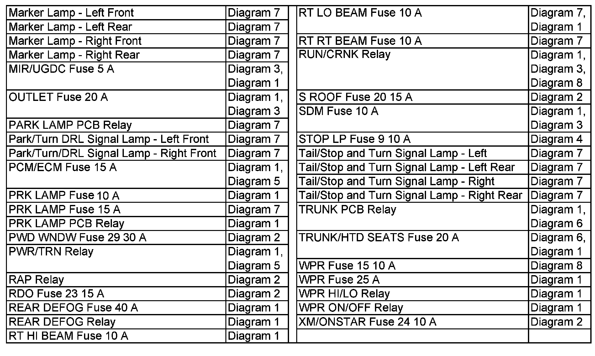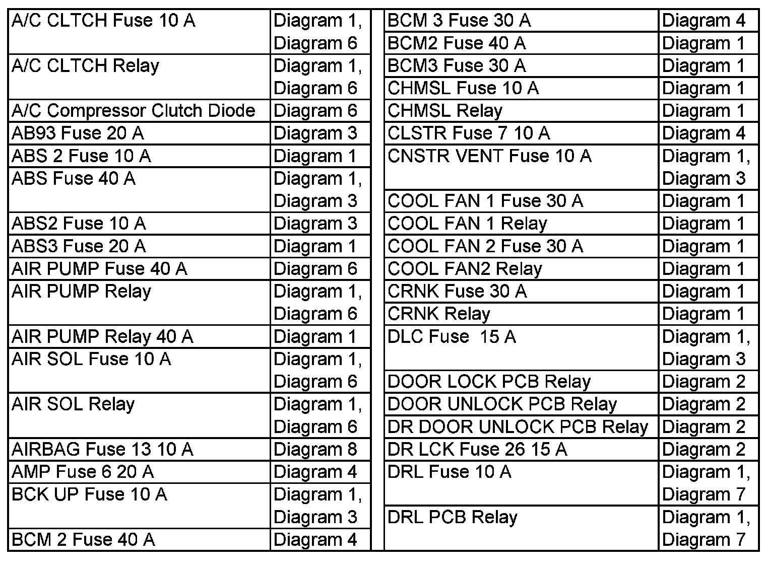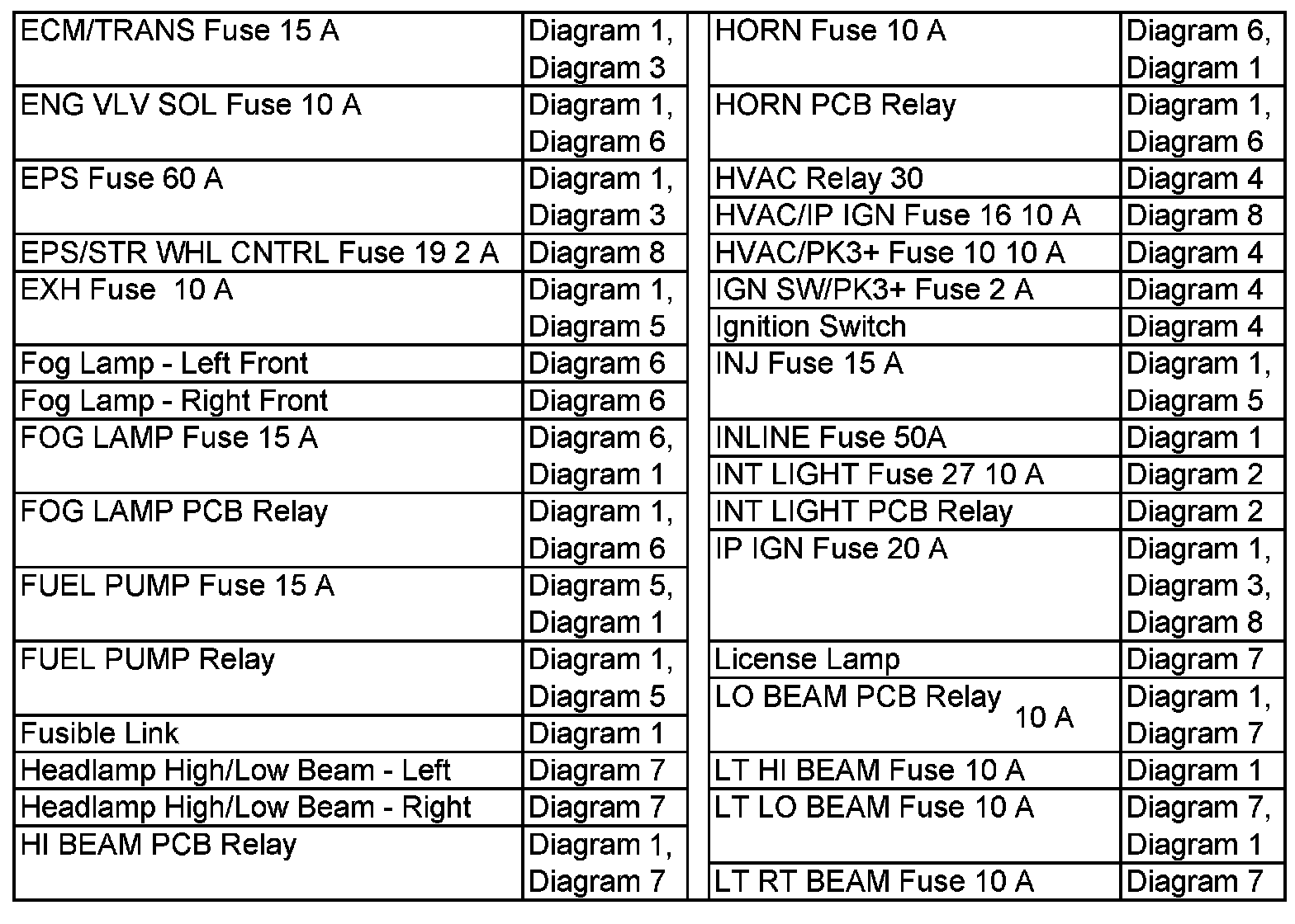 Power Distribution Diagram Index