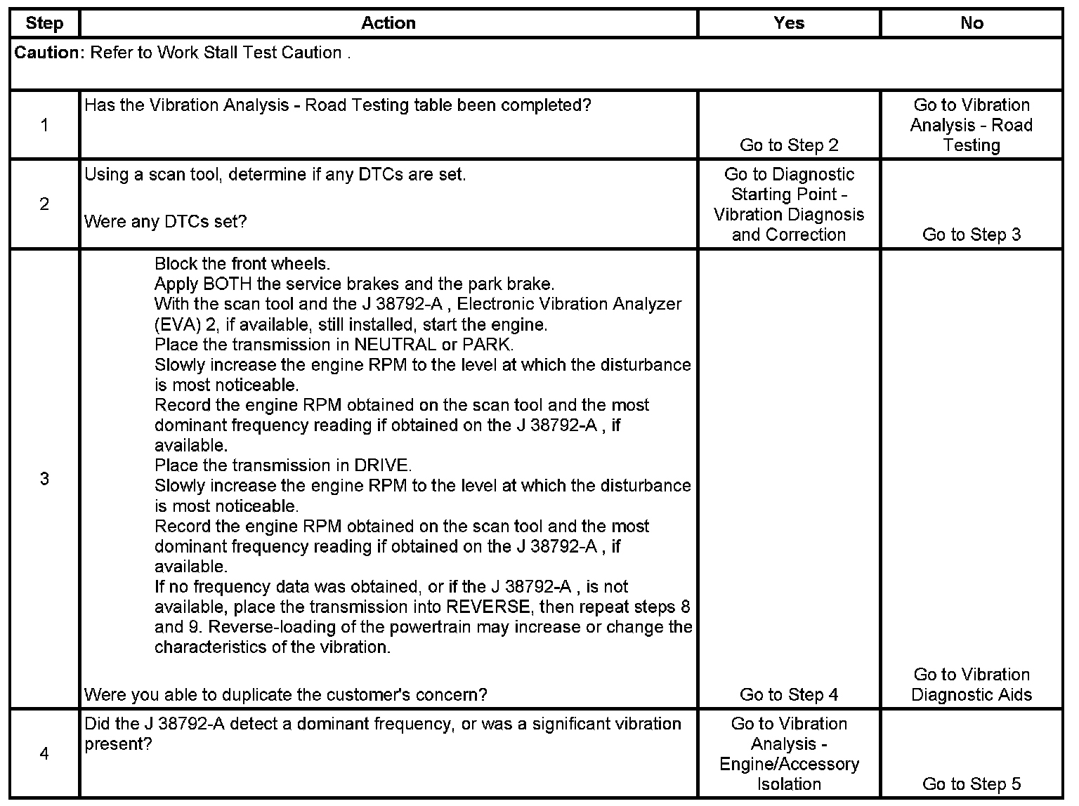 The numbers below refer to the step numbers on the diagnostic table.