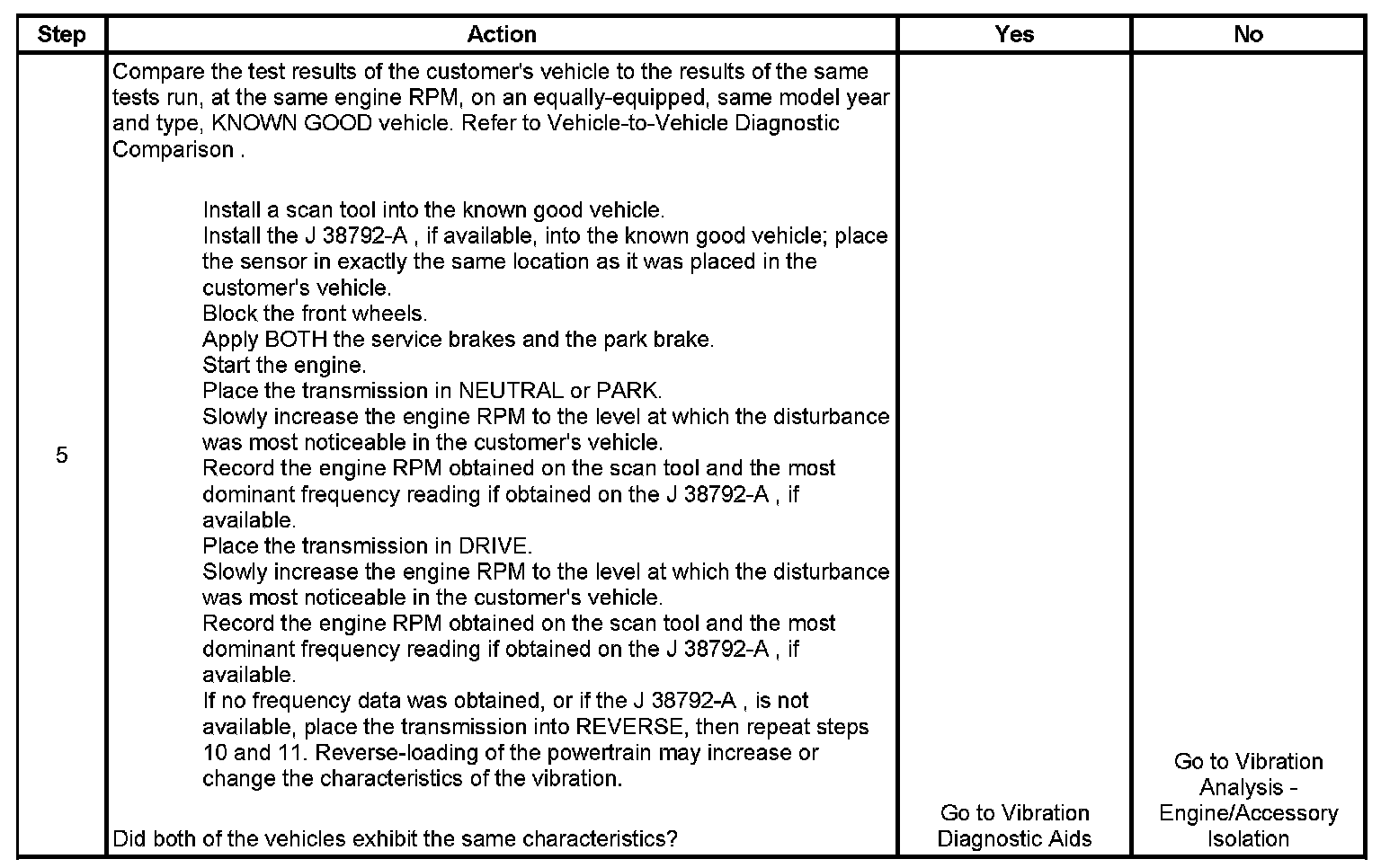 5. Making comparisons of the customer's vehicle with an equally equipped, same model year and type, KNOWN GOOD vehicle will help determine if certain disturbances may be characteristic of a vehicle design.