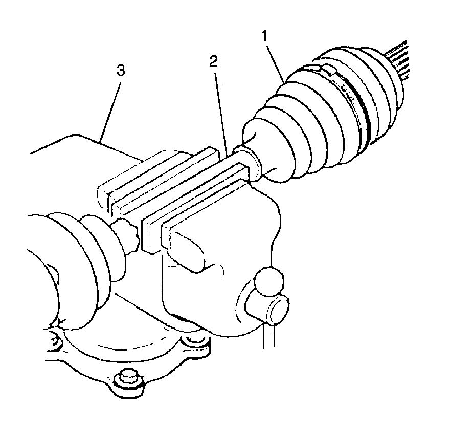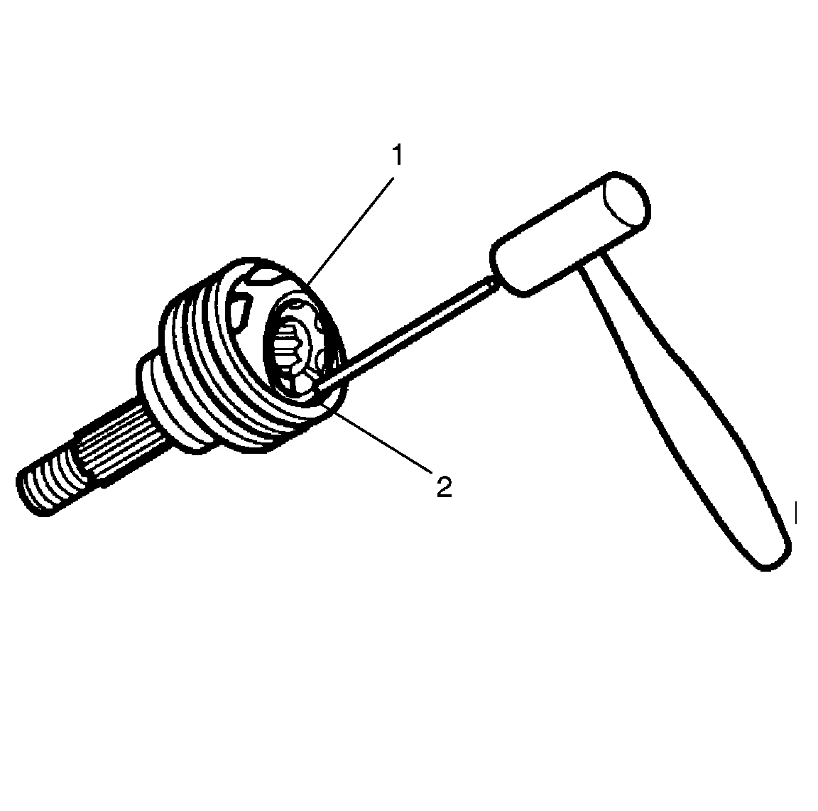 1. Position the outboard end (1) of the wheel drive shaft assembly in tool .