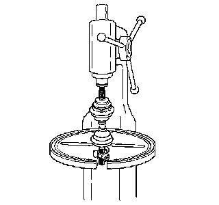17. Lower the arbor press head onto the CV joint assembly until the press cannot move any further. This ensures that the retaining ring engages in the inner race. Do not exceed 1 779 N (4,000 lb) press load during assembly.