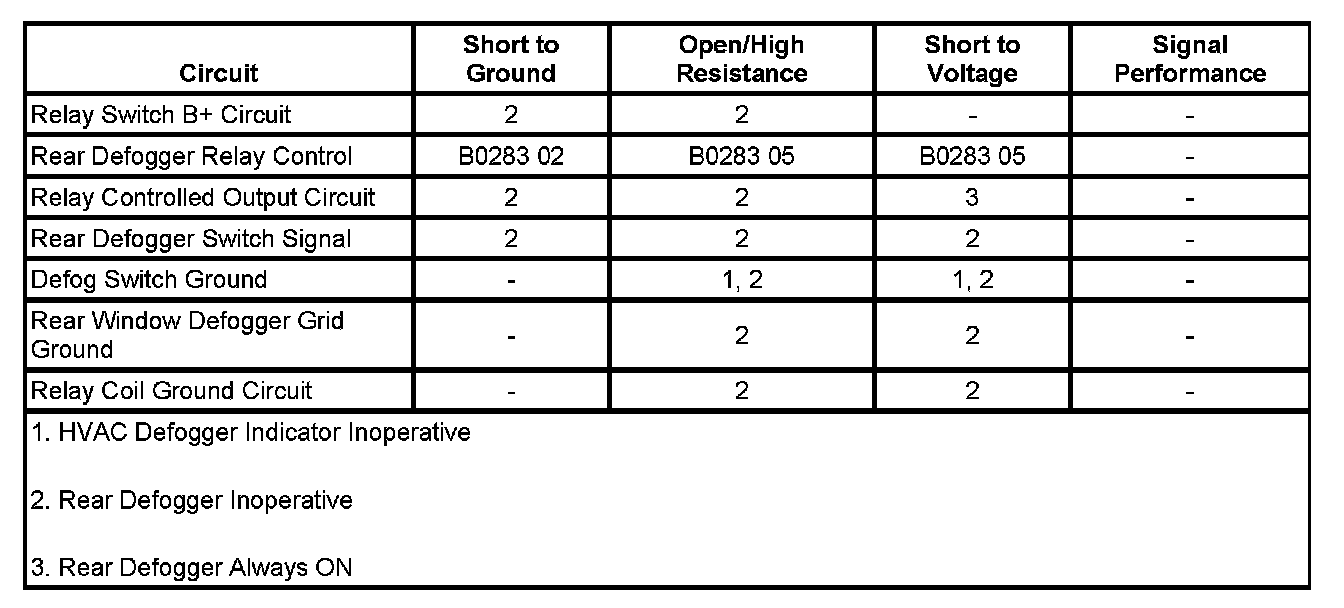 ^ If the rear window defogger does not turn ON and OFF when changing between the commanded states, refer to Rear Defogger Malfunction.