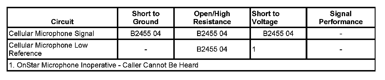 * The CIM detects an open, short to ground or short to voltage in the cellular microphone signal circuit for 10 seconds or greater.
