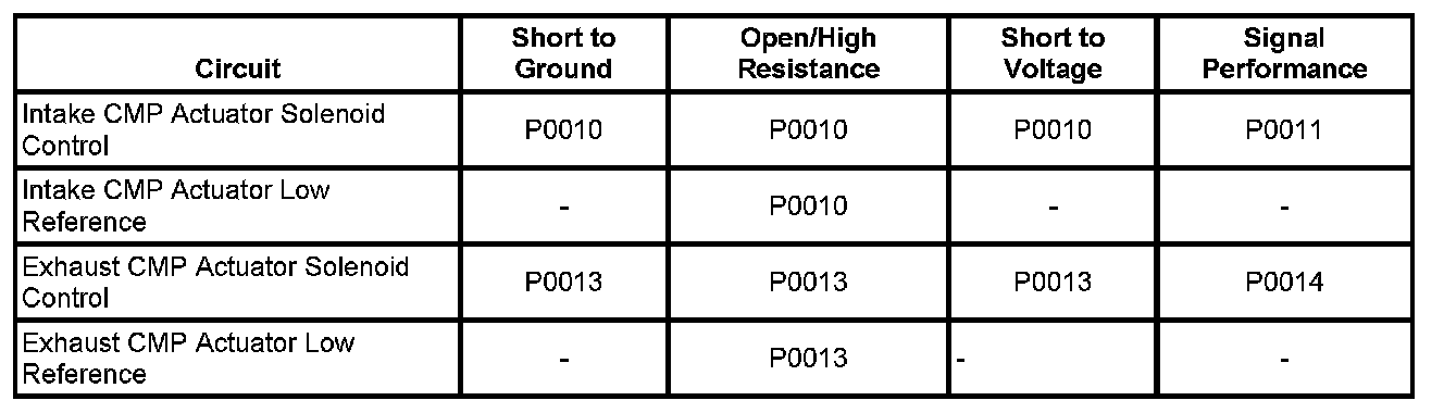 - Intake Camshaft Position (CMP) Actuator Solenoid Control Circuit