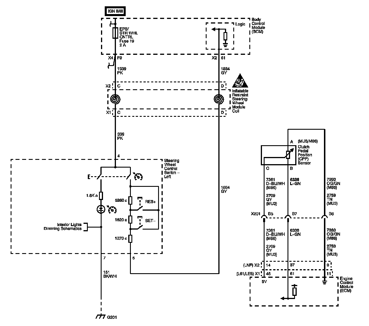 The locations for the Connectors, Grounds, Splices, and Grommets shown within these diagrams can be found via their numbers at Vehicle Locations.