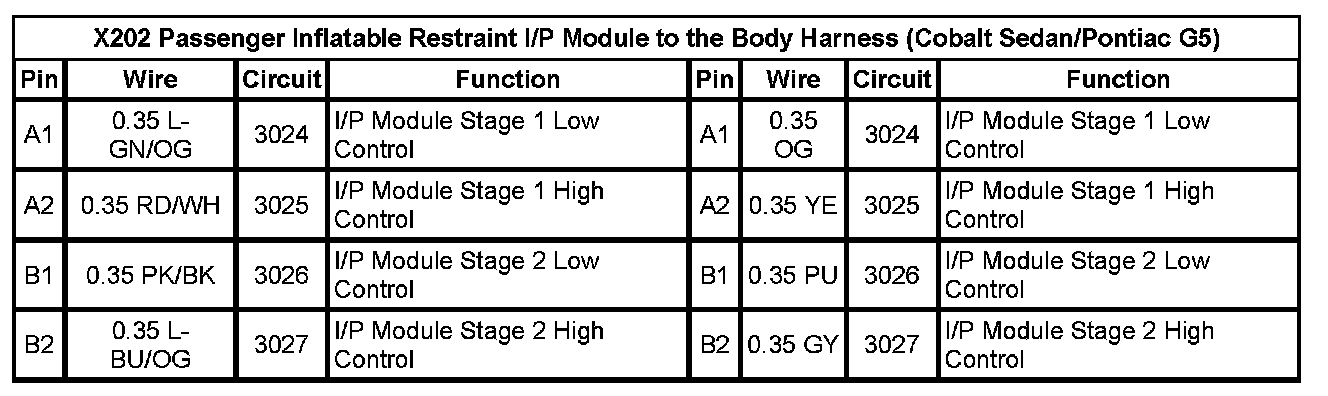 X202 Passenger Inflatable Restraint I/P Module to the Body Harness (Cobalt Sedan/Pontiac G5)
