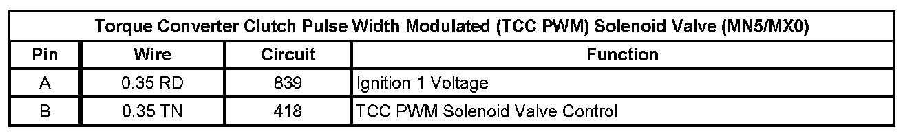 Torque Converter Clutch Pulse Width Modulation (TCC PWM) Solenoid Valve (MN5/MX0)