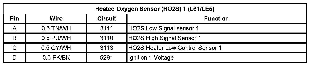 Heated Oxygen Sensor (HO2S) 1 (L61/LE5)