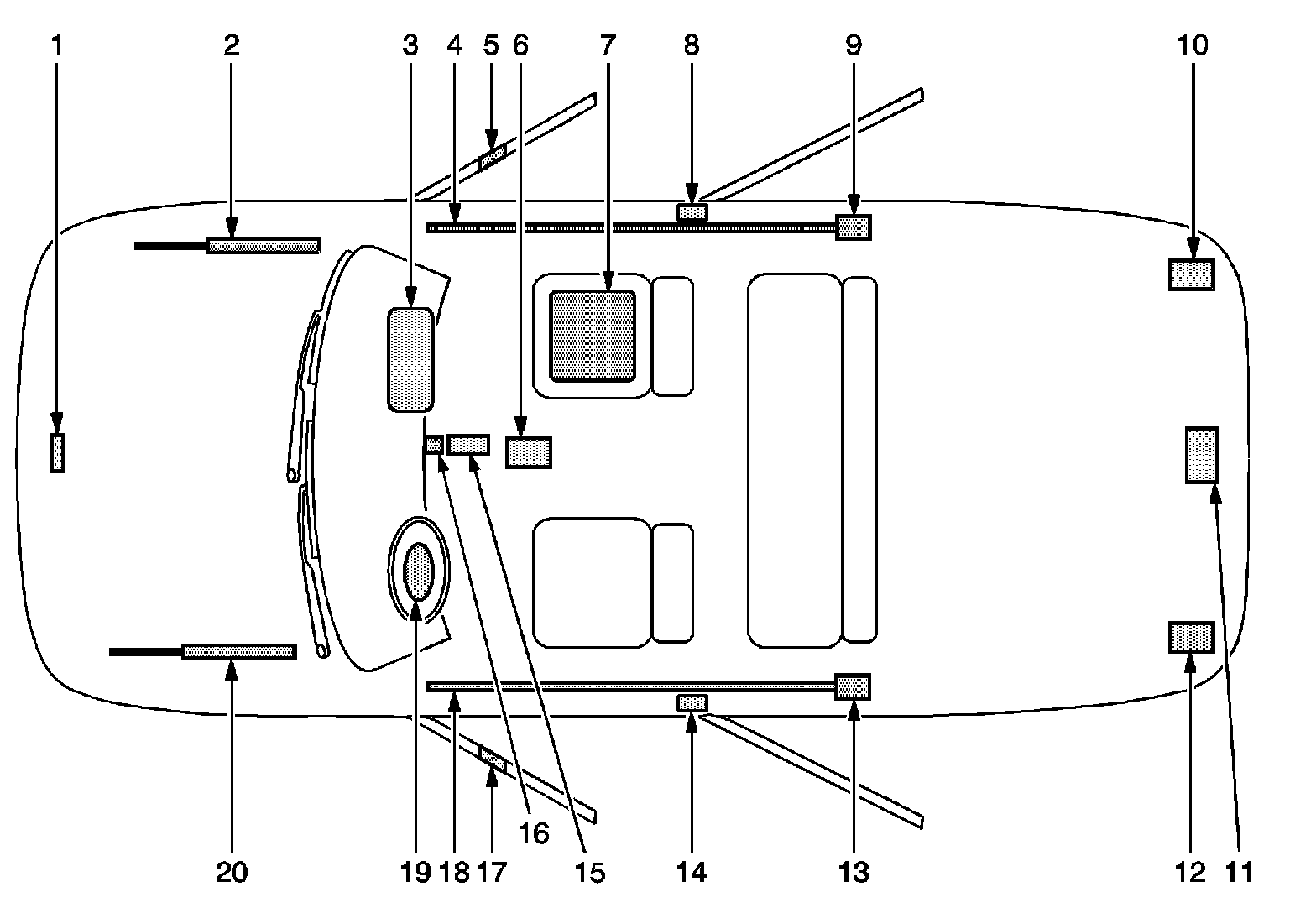 Inflatable Restraint Sensing and Diagnostic Module SDM--Located underneath the vehicle carpet under the center console