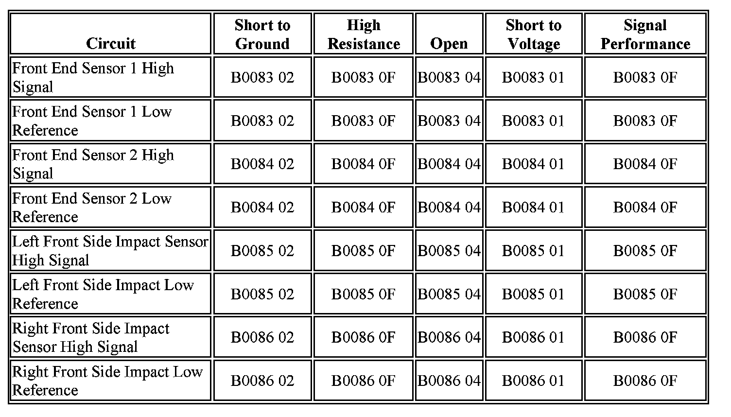 - DTC B0086 02: Right Front/Passenger Side Impact Sensor Short to Ground.
