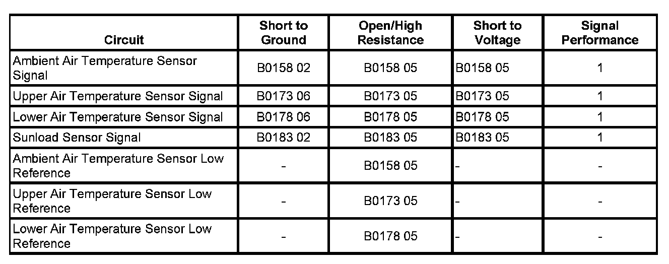 * The default value of 85°C (185°F) will be substituted for the ambient air temperature sensor data by the HVAC control module.