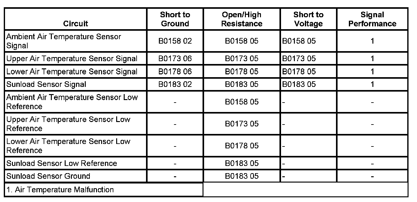 - Solar Load Sensor 1 Circuit Short to Ground