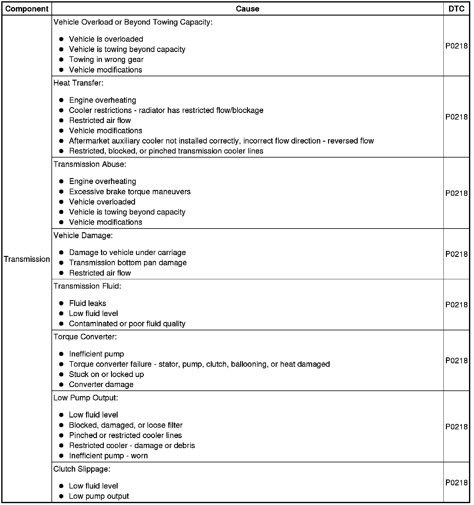 - Transmission Fluid Overtemperature