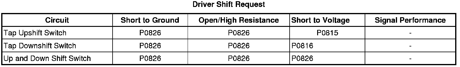 2. Observe the scan tool Driver Shift Request parameter while pressing the tap-up and tap-down switch. The reading should change between Upshift and Downshift.