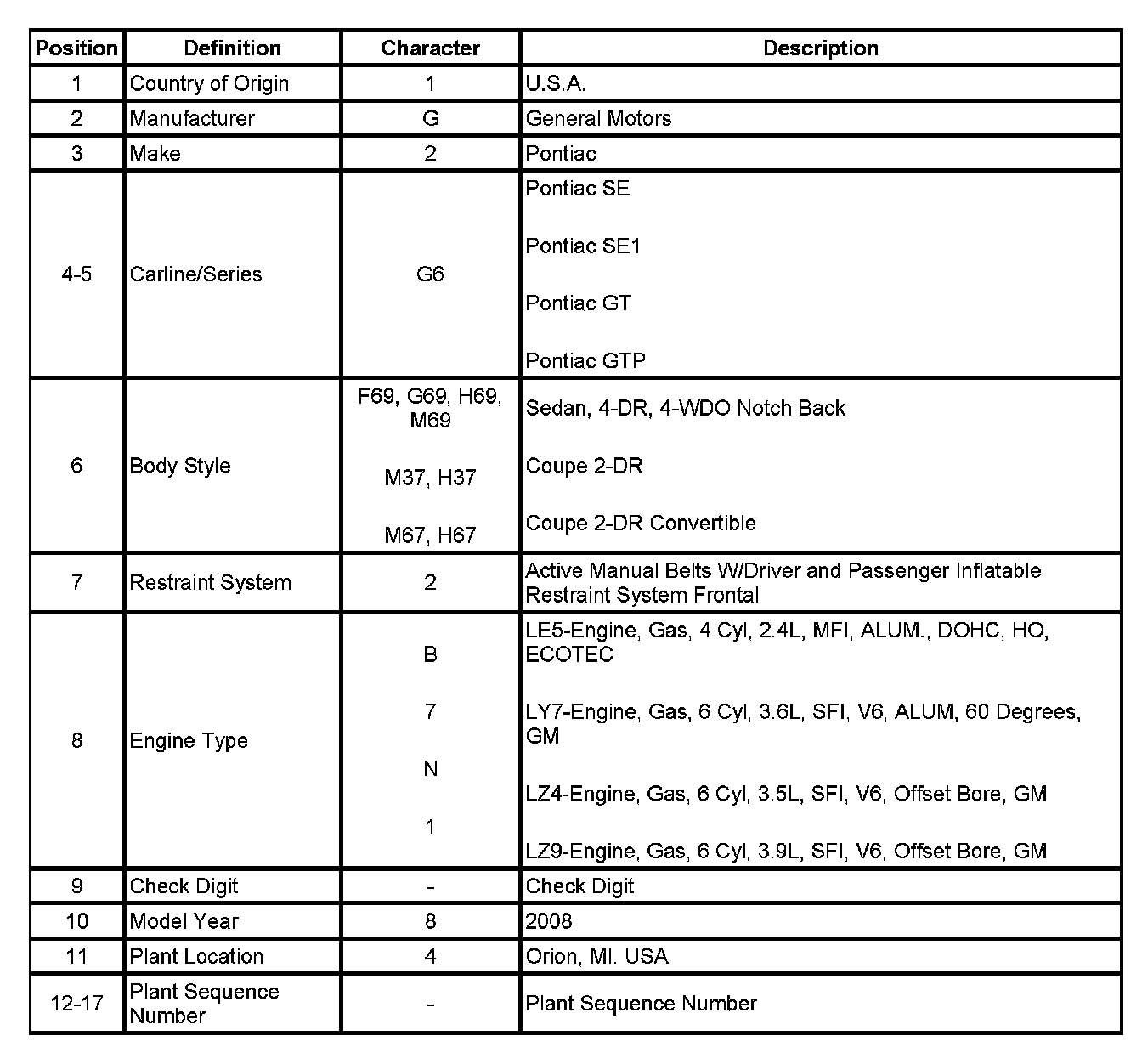 Vehicle, Engine and Transmission ID and VIN Location, Derivative and Usage