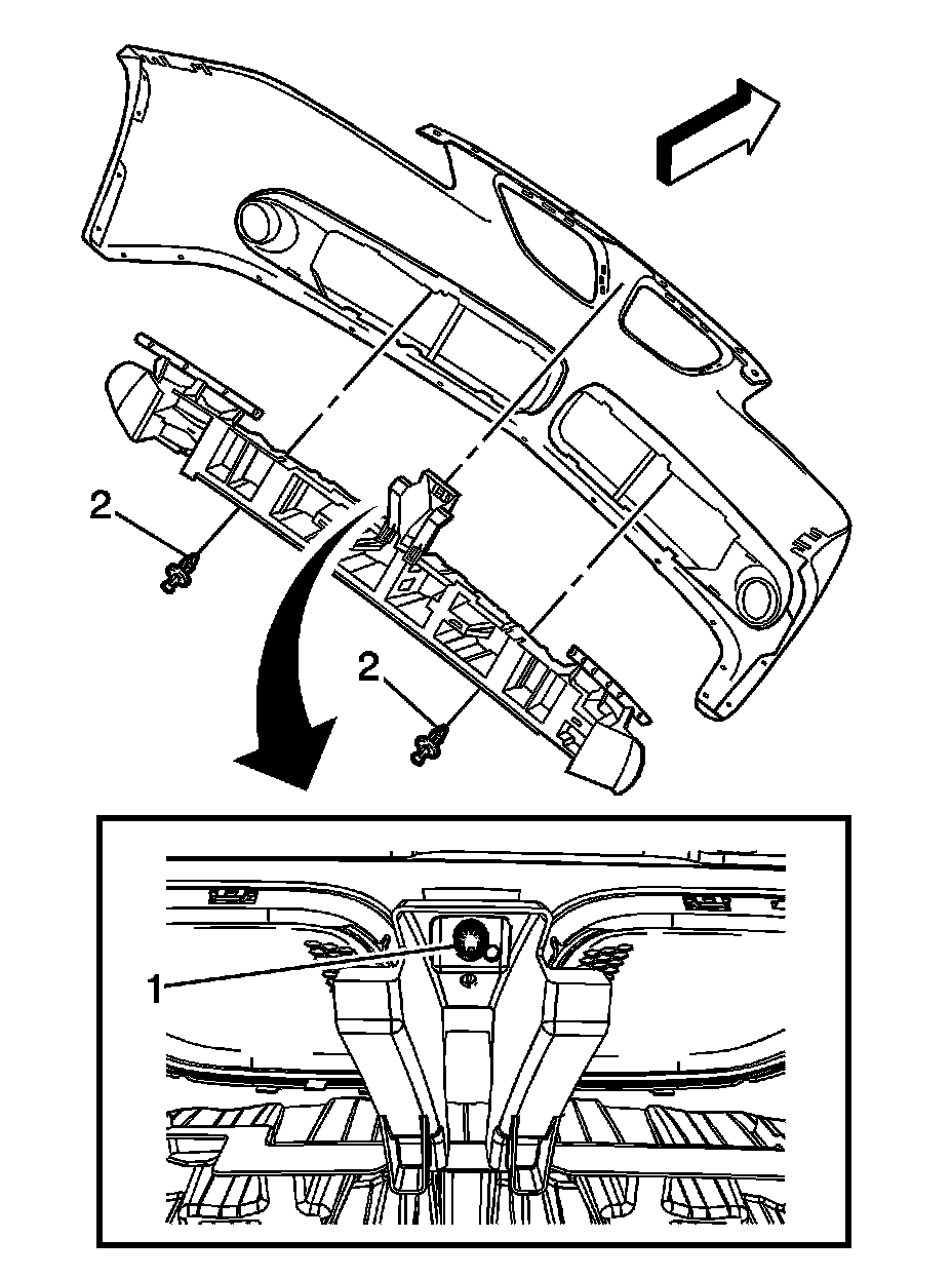1.Remove the front bumper fascia. Refer to Front Bumper Fascia Replacement Front Bumper Fascia Replacement .