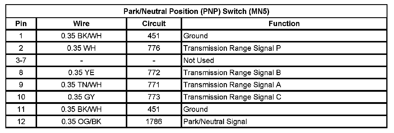 Park/Neutral Position (PNP) Switch (MN5)