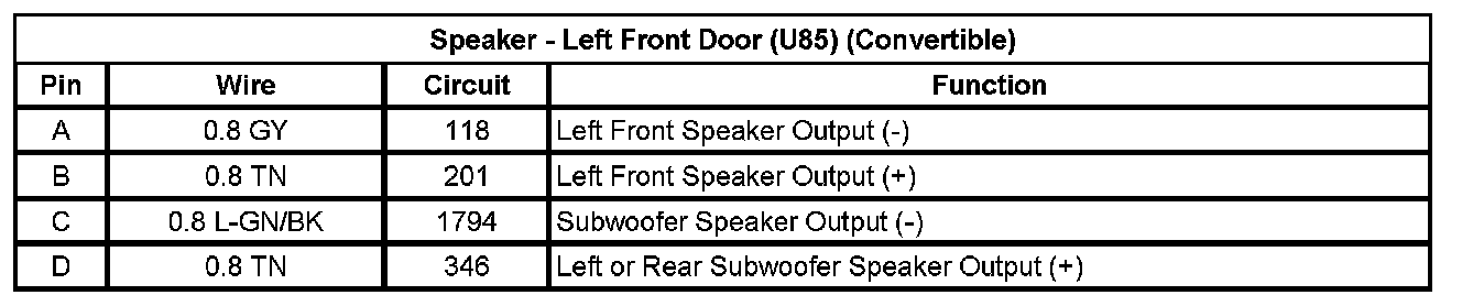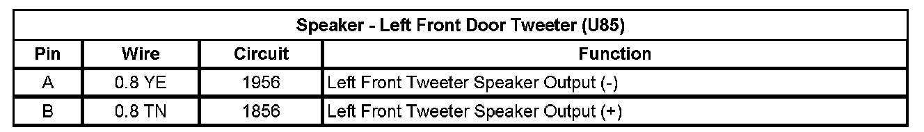 Speaker - Left Front Door (U85) (Coupe/Sedan)
