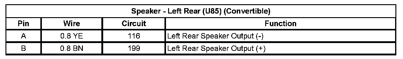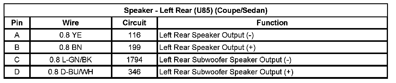 Speaker - Left Rear (U85) (Coupe/Sedan)