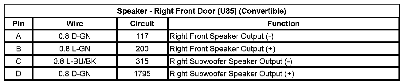 Speaker - Right Front Door (U85) (Coupe/Sedan)