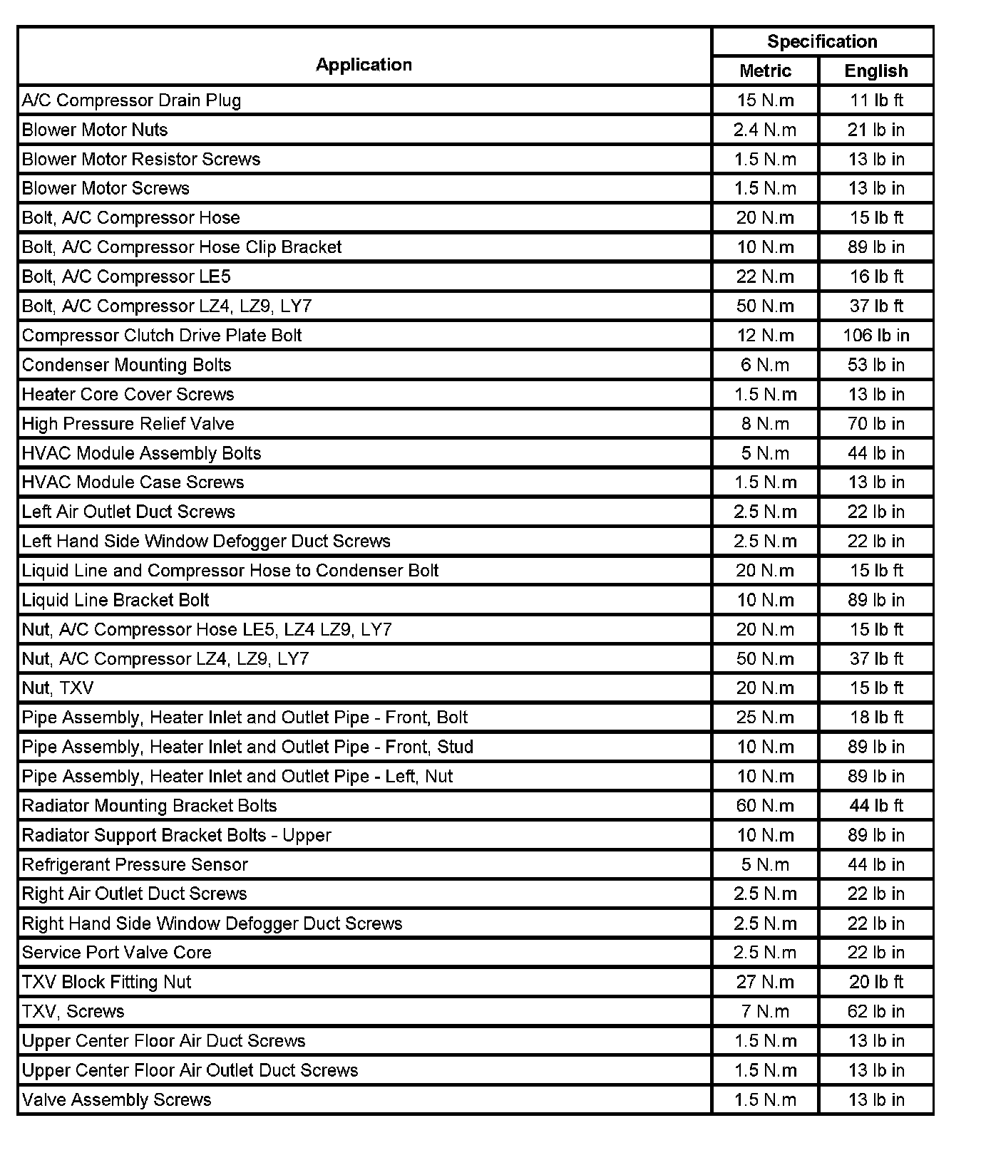 Fastener Tightening Specifications