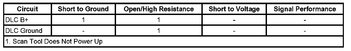 2. Ignition ON, verify a test lamp illuminates between the B+ circuit terminal 16 at the DLC and ground.