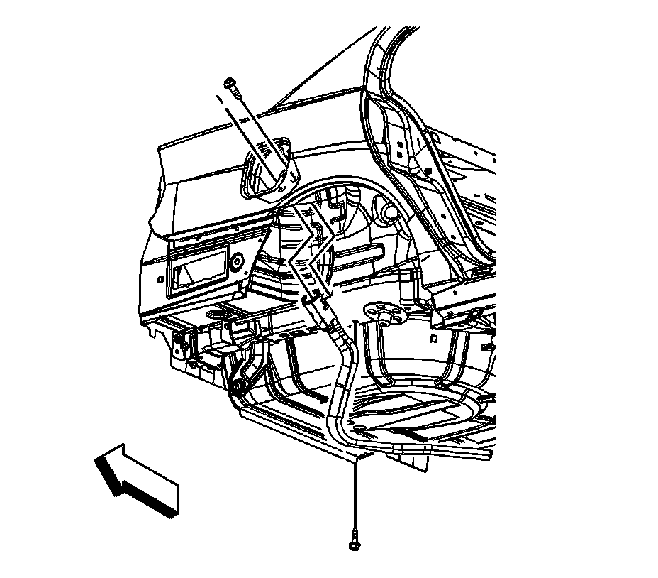 2. Remove the fuel fill pipe bolt from the fuel fill pocket.