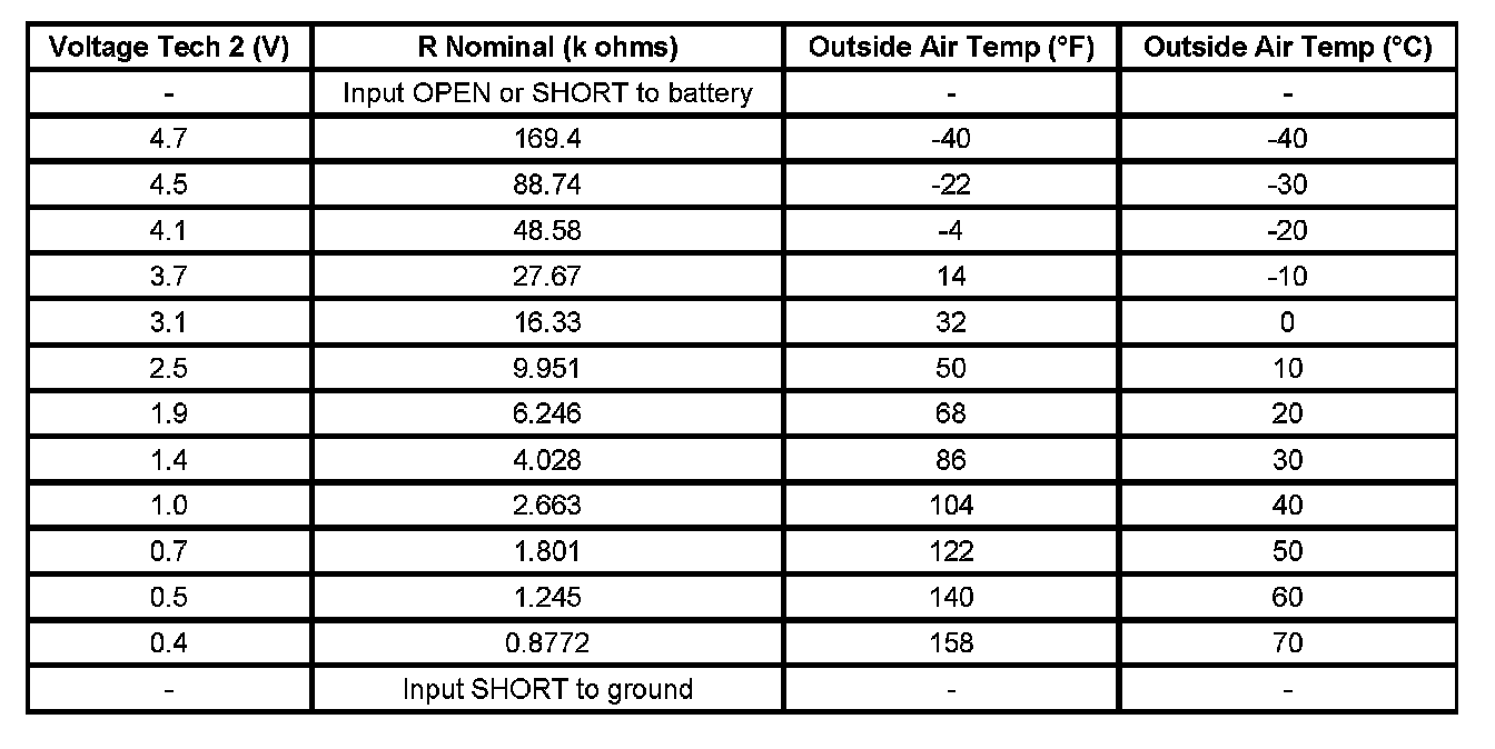 Sensor Resistance Table (Ambient Air Temp Sensor)