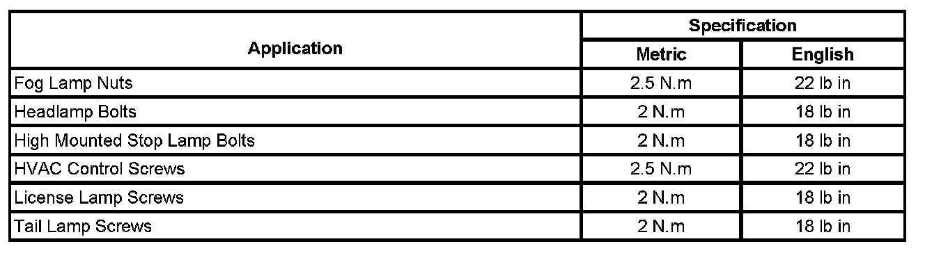 Fastener Tightening Specifications