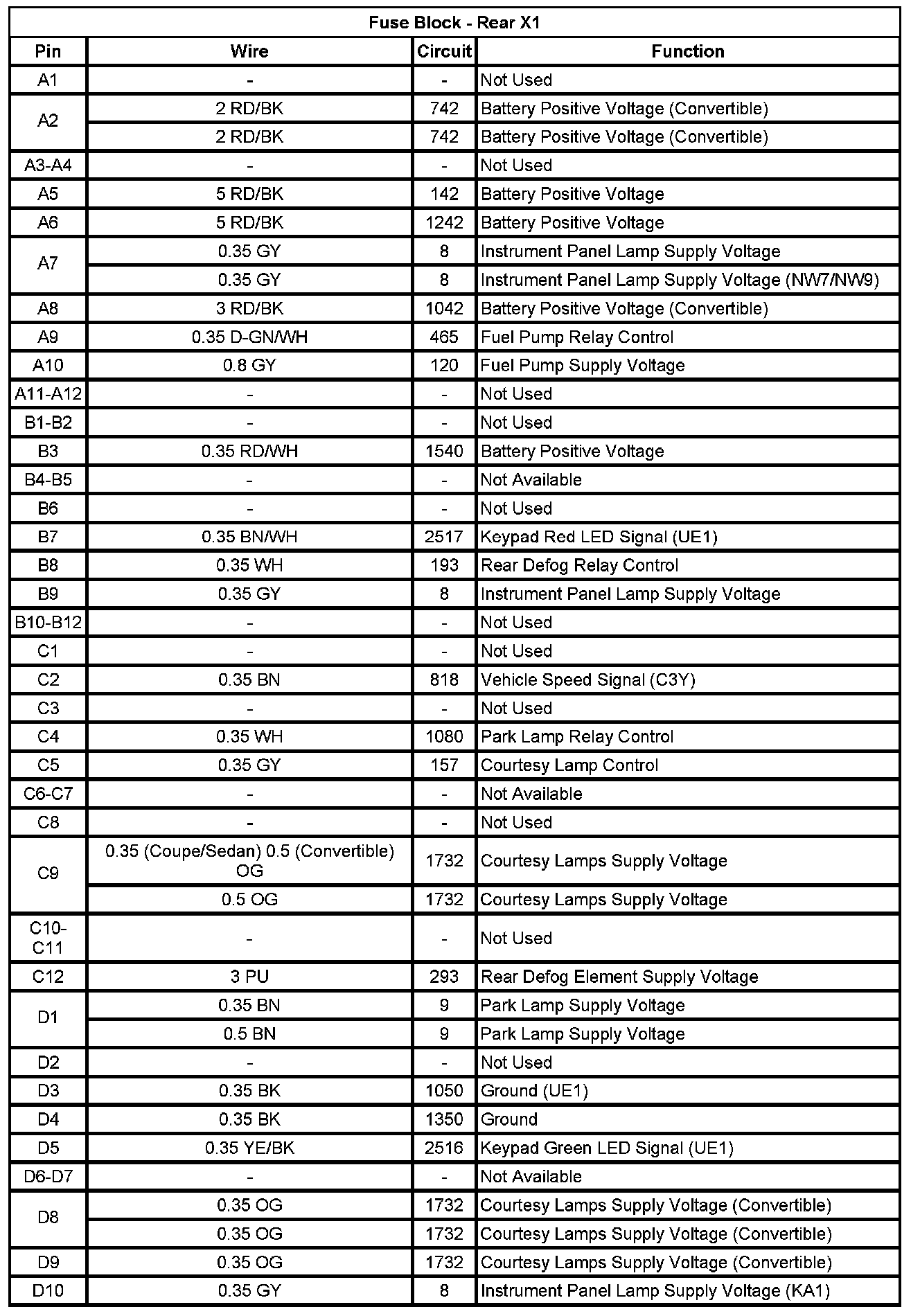 Fuse Block - Rear X1 (Pin A1 To D10):