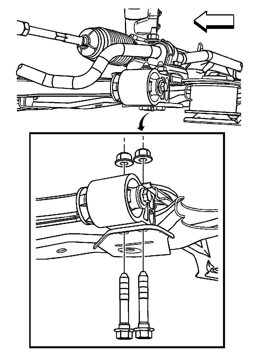 8. Remove the rear lower control arm bushing nuts and bolts. Refer to Front Lower Control Arm Bushing Replacement (Service and Repair) .