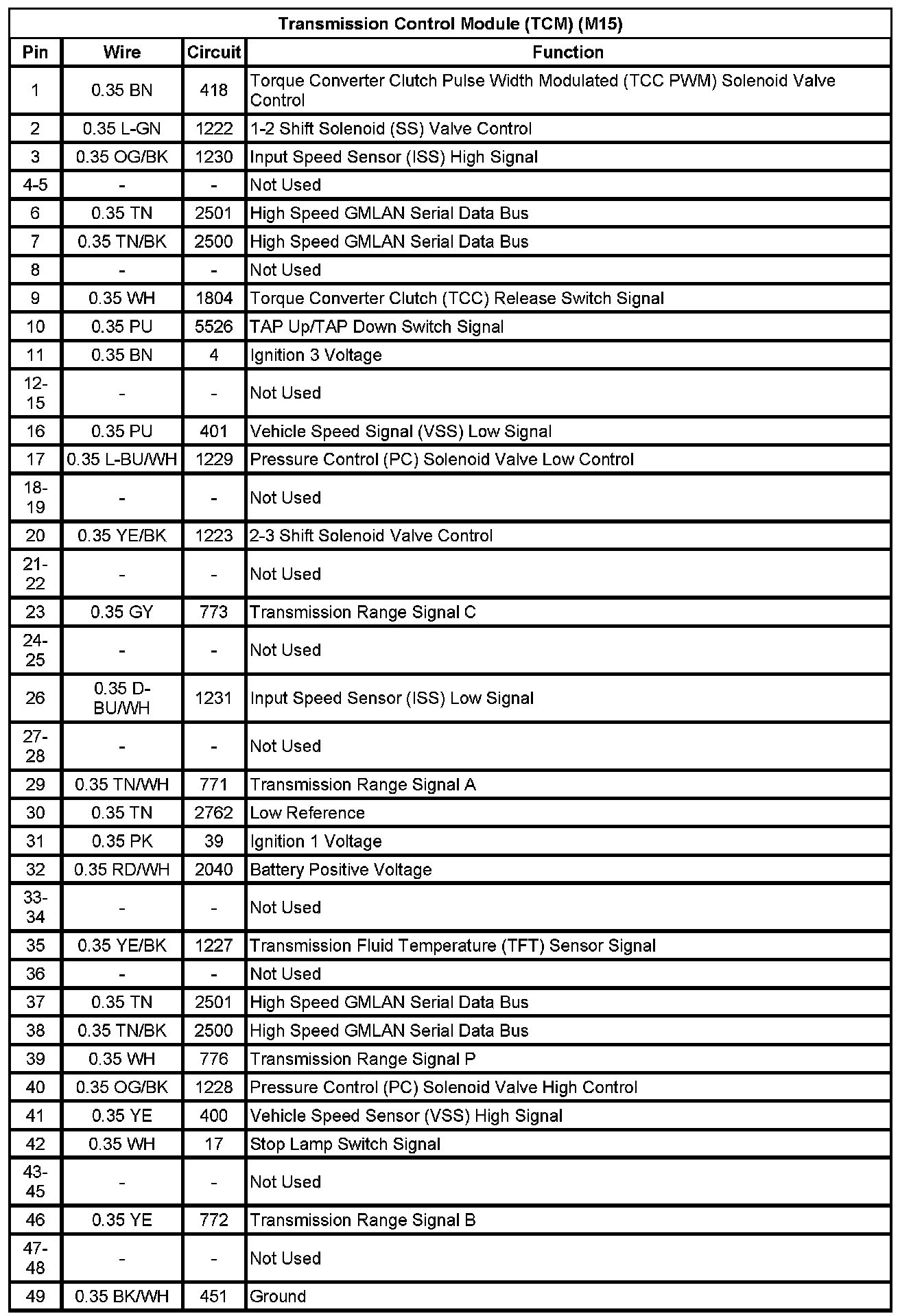 Transmission Control Module (TCM) (MN5) (Pin 32 To 49):