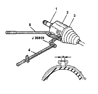7. Install the spacer ring (2) into the groove of the halfshaft bar J 8059 .
