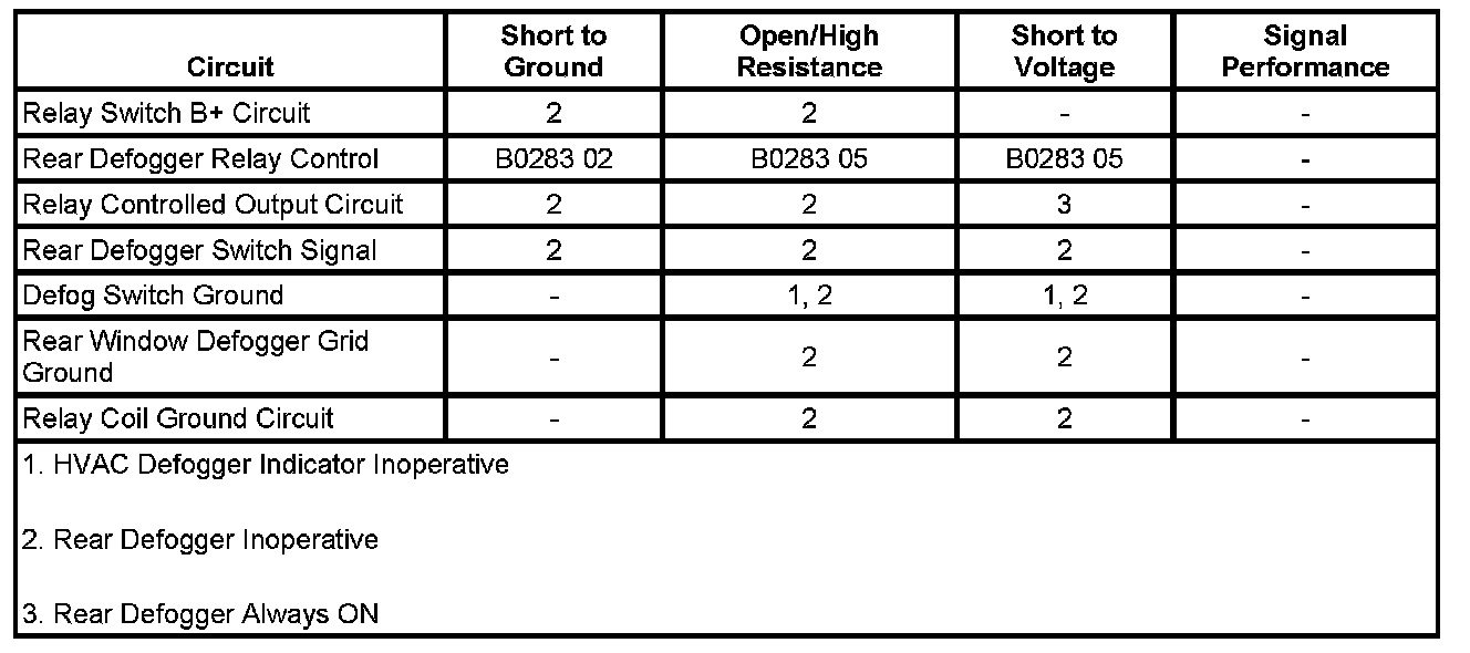 ^ If the rear window defogger does not turn ON and OFF when changing between the commanded states, refer to Rear Defogger Malfunction.