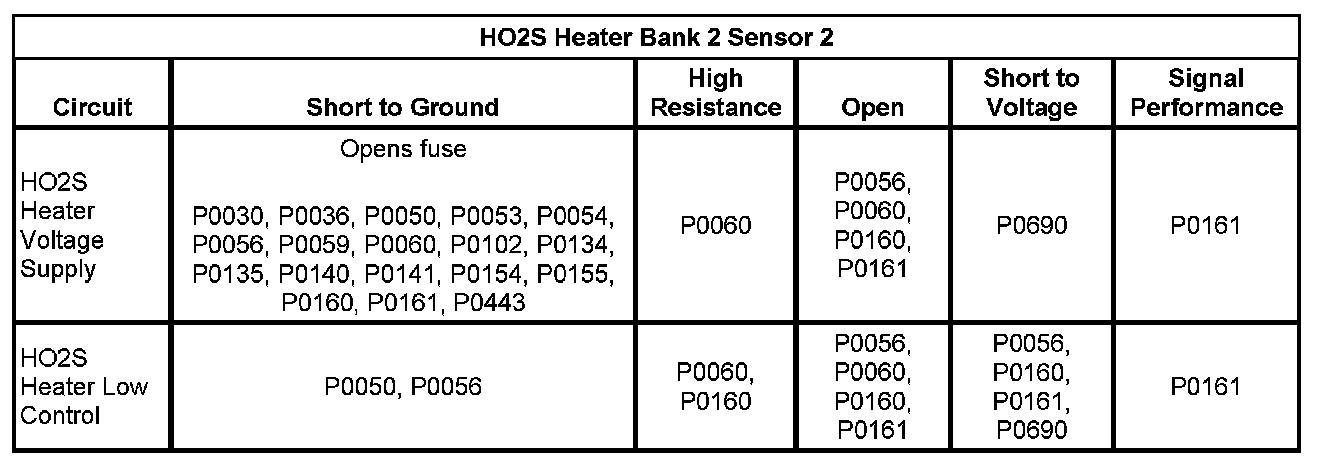 * The control module detects that the HO2S heater control circuit status is incorrect for more than 2 seconds.