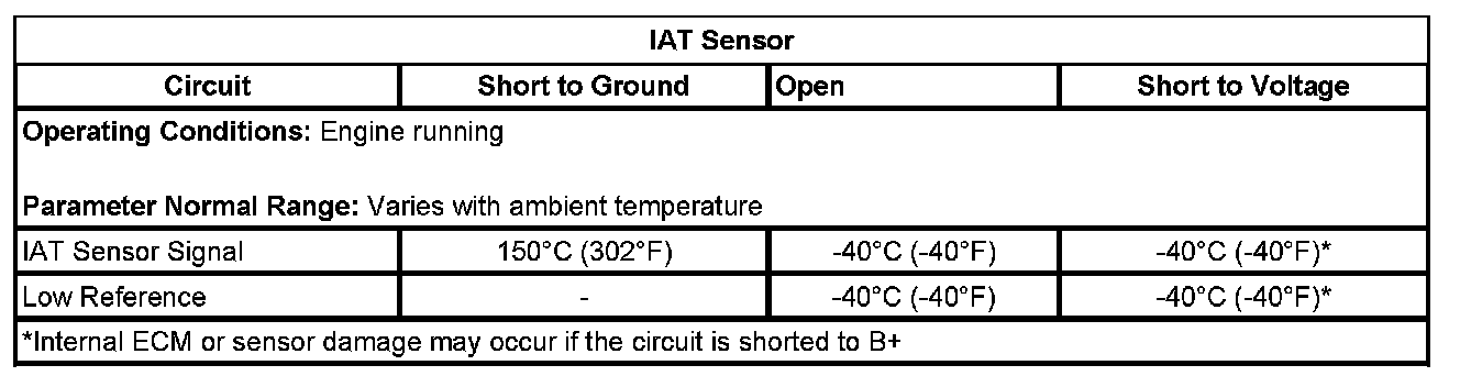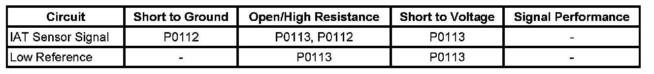 * Depending on the ambient temperature, an IAT sensor signal circuit or low reference circuit that is shorted to the MAF sensor signal circuit can cause a DTC P0113 to set. This condition causes a rapid fluctuation in the IAT Sensor parameter.
