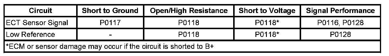 * A slight to moderate resistance in the ECT sensor signal circuit or low reference circuit will affect this diagnostic. This condition results in a greater voltage on the ECT sensor signal circuit, which is interpreted by the ECM as a colder ECT.