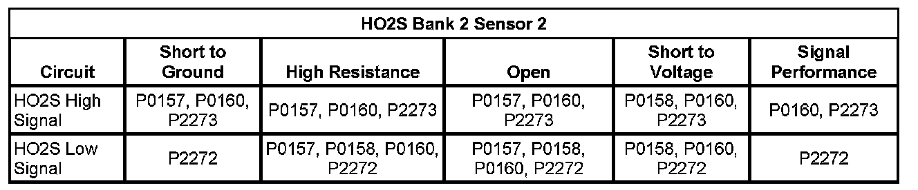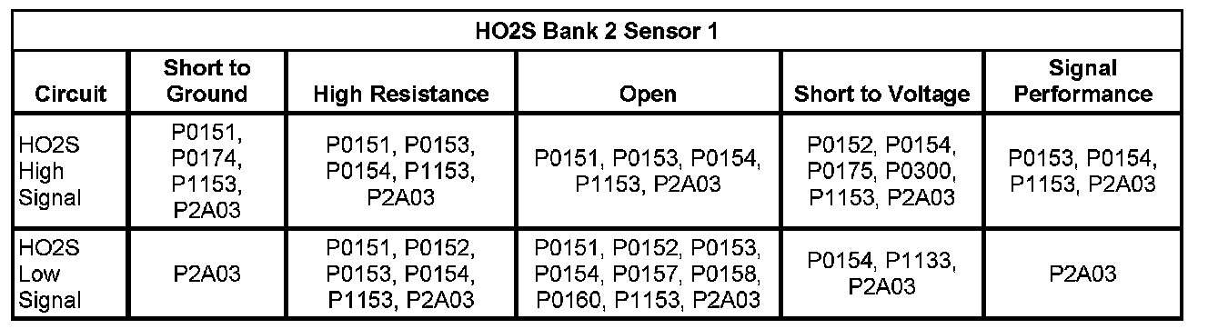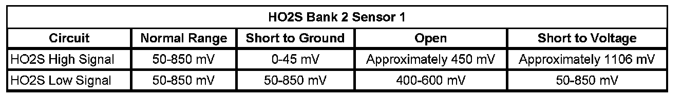 * The ECM detects that the HO2S 1 signal voltage is less than 50 mV for more than 25 seconds.