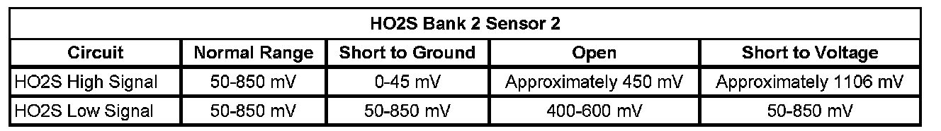 * The ECM detects that the HO2S 2 signal voltage remains below 50 mV for more than 120 seconds.
