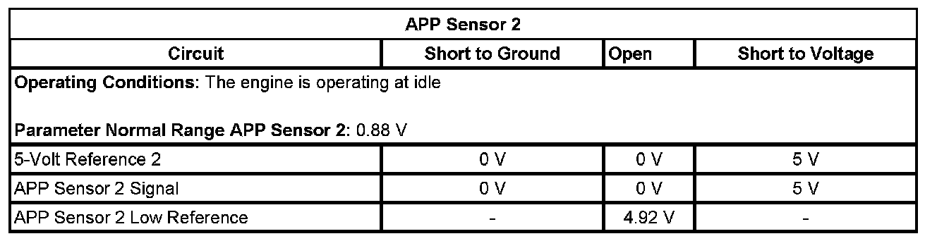 - Accelerator Pedal Position (APP) Sensor 2 Circuit High Voltage