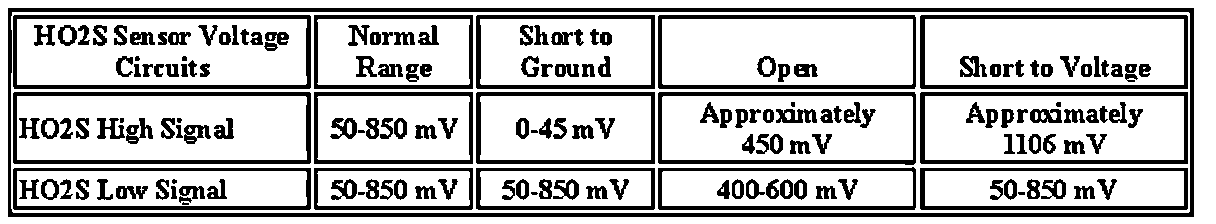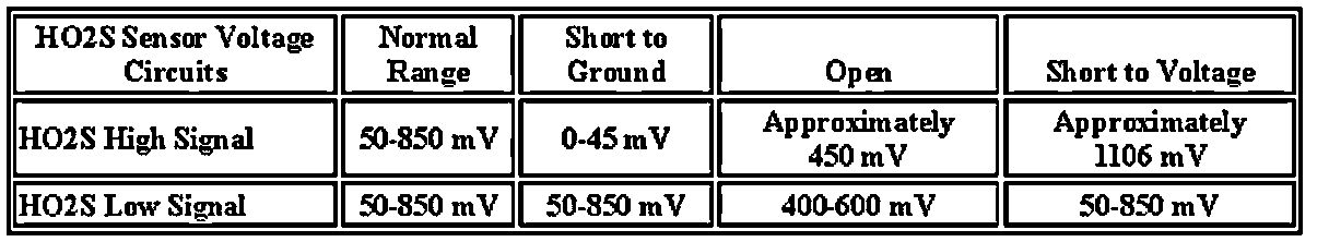- The ECM detects that the HO2S 1 signal voltage is between 380-525 mV for more than 30 seconds.