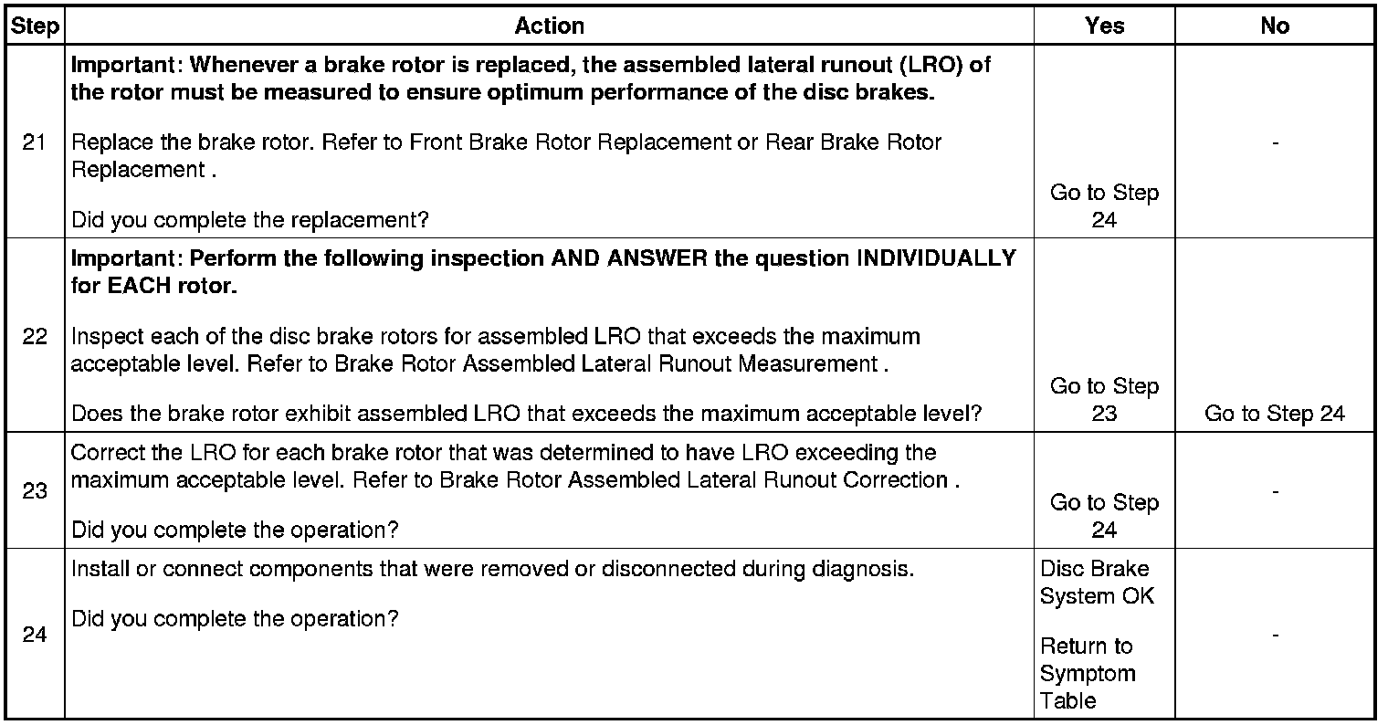 22. Disc brake rotor assembled lateral runout (LRO) that exceeds the maximum acceptable level can lead to thickness variation.