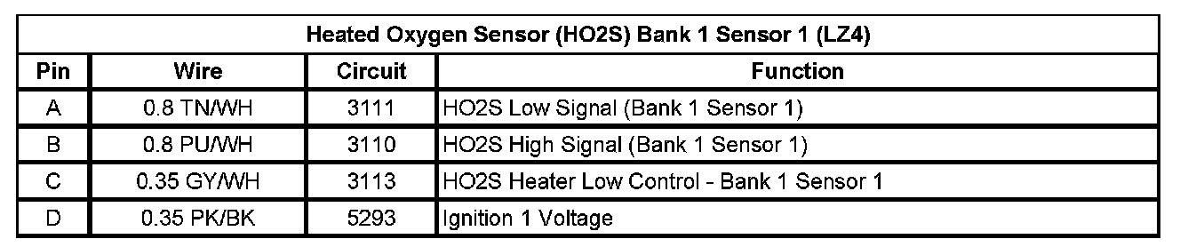 Heated Oxygen Sensor (HO2S) Bank 1 Sensor 1 (LZ4)